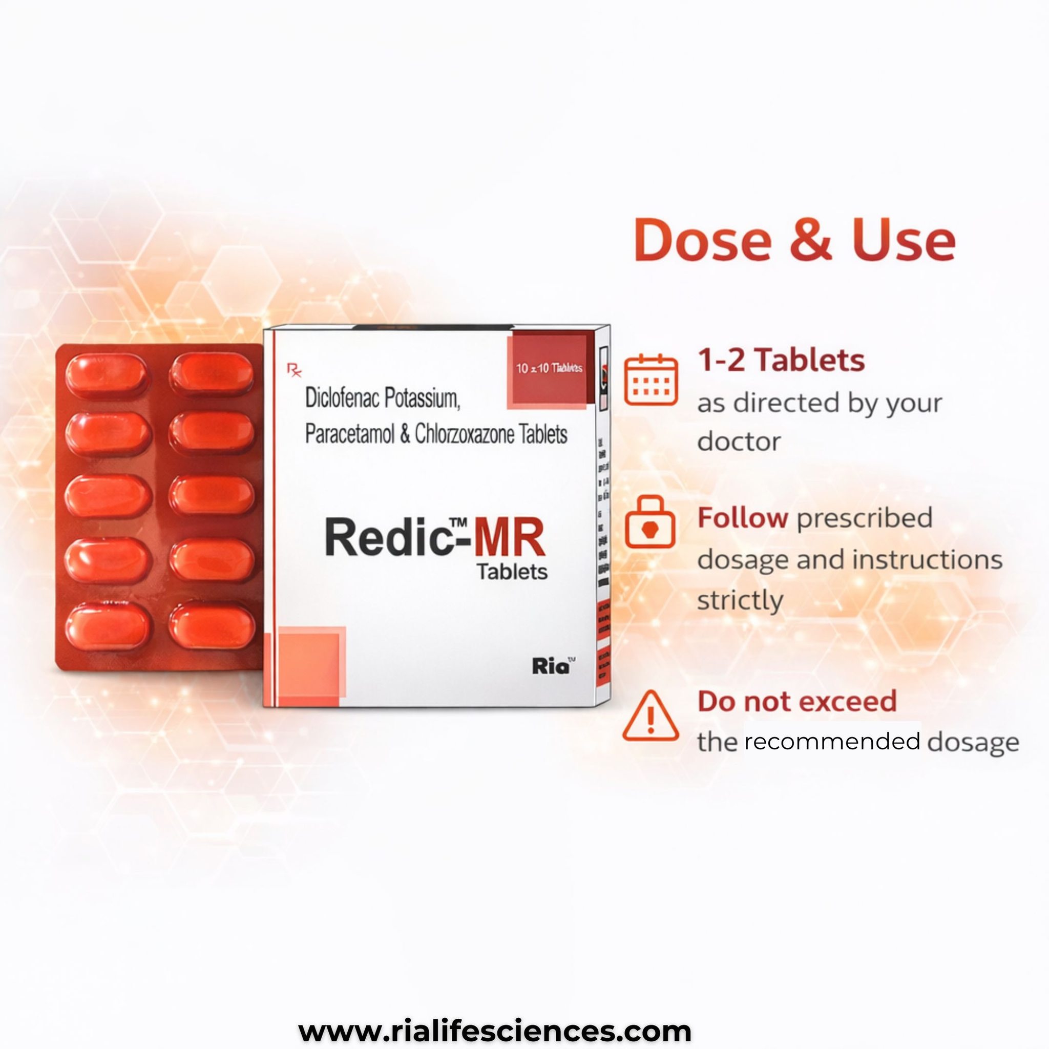 Composition: Diclofenac 50mg, Paracetamol 325mg, Chlorzoxazone 250mg