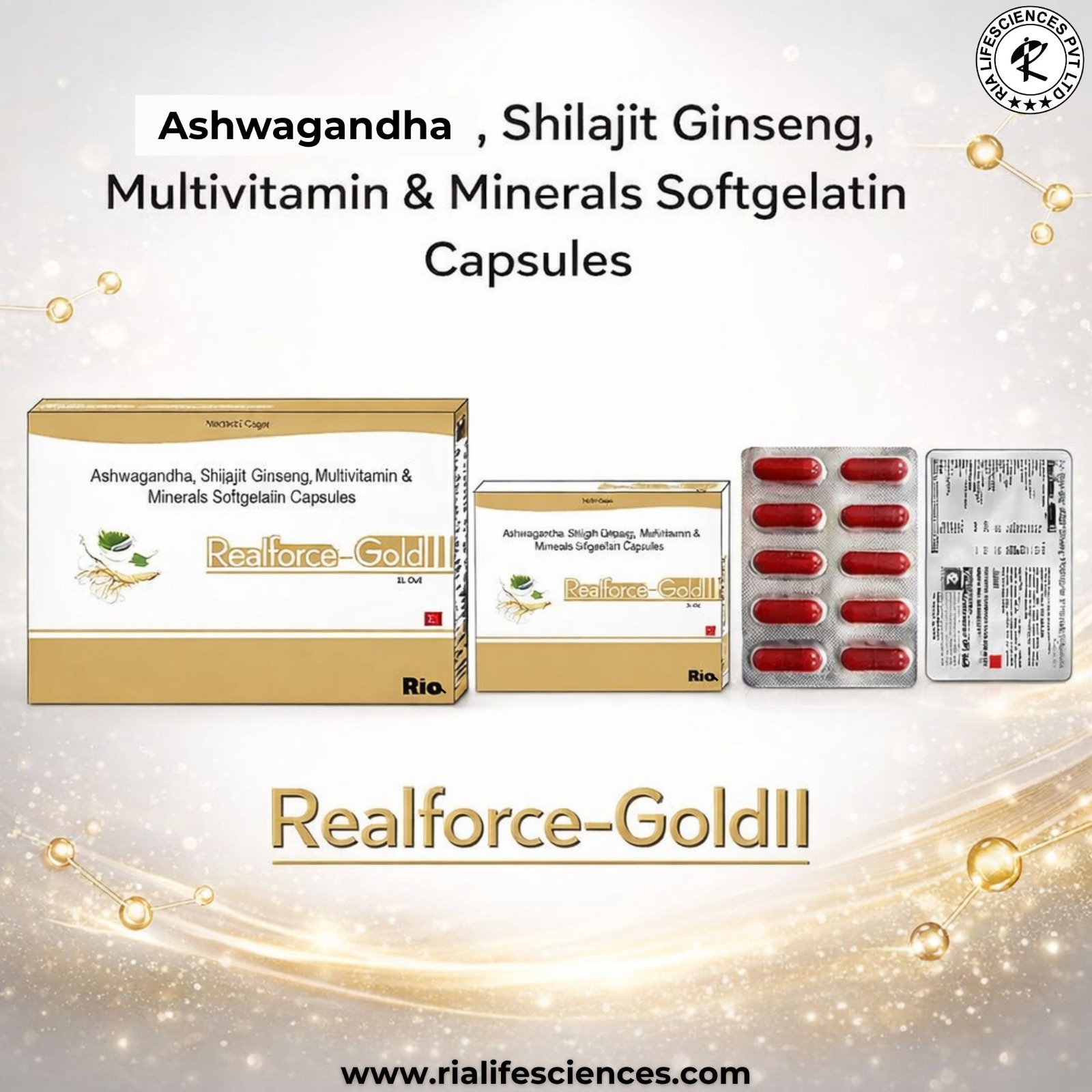 Composition: Ahwagandha, Shilajit, Ginseng, MultiVitamin & MultiMineral Softgelatin Capsule